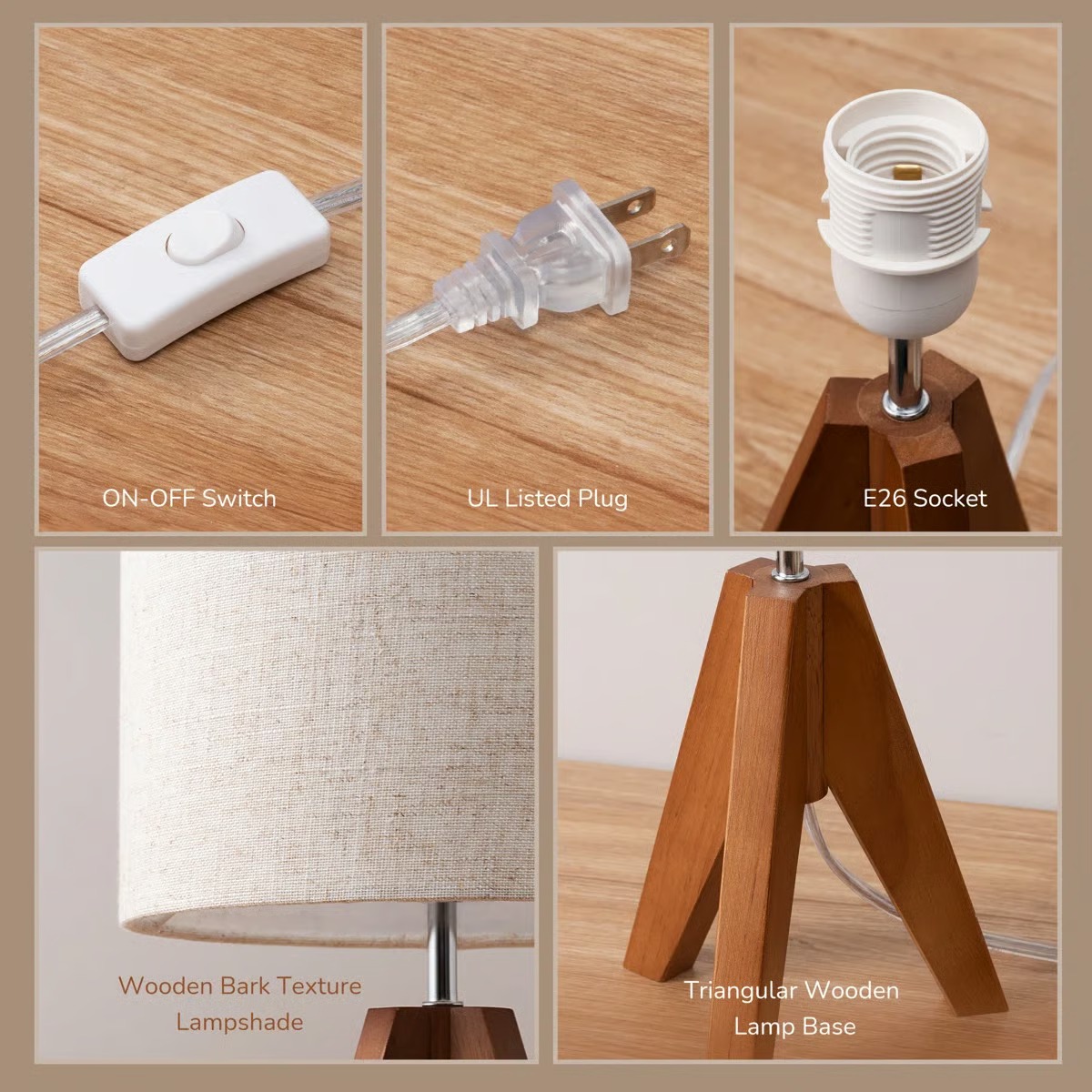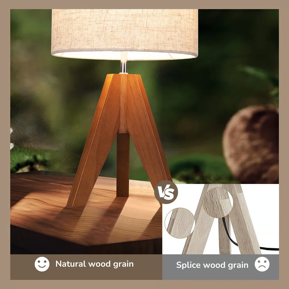 This modern table lamp set brings clean lines and natural warmth to your space. Each one features a solid wood tripod base topped with a cylindrical linen shade that gently diffuses light. The compact size makes them a great fit for nightstands, desks, or side tables.