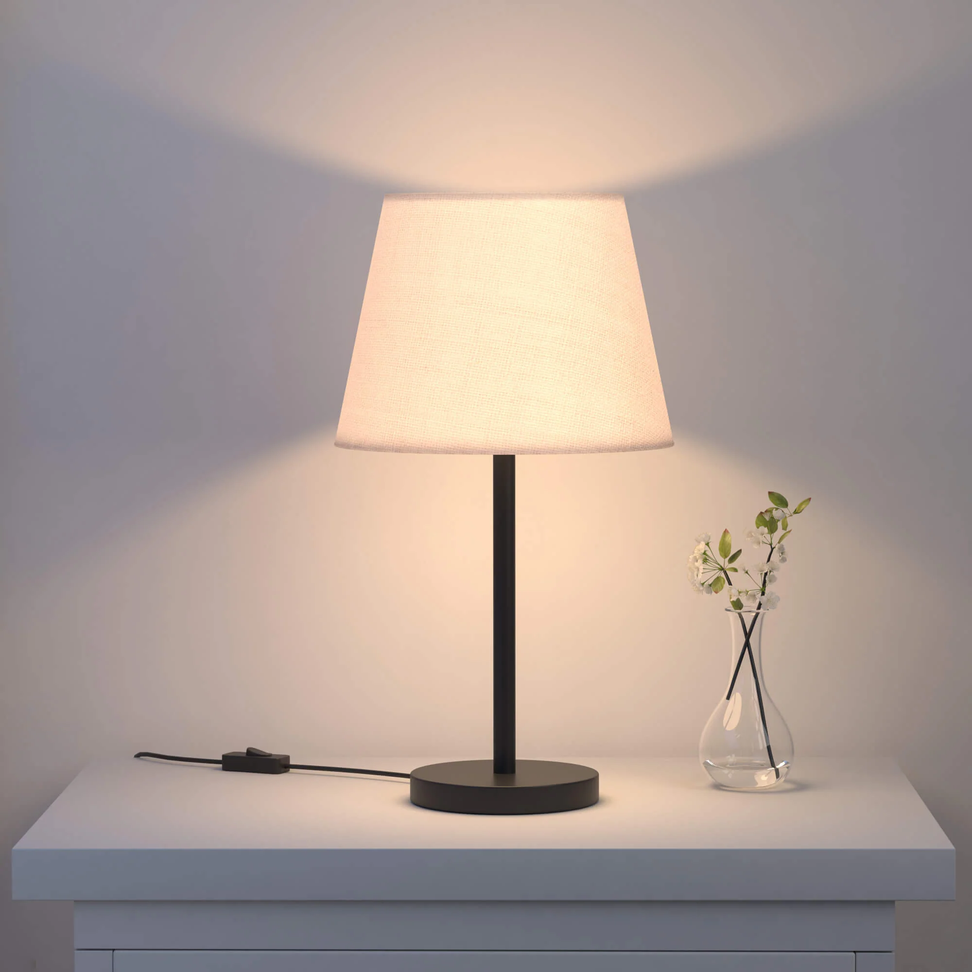 Constructed of high-quality black metal base and linen fabric lamp shade.