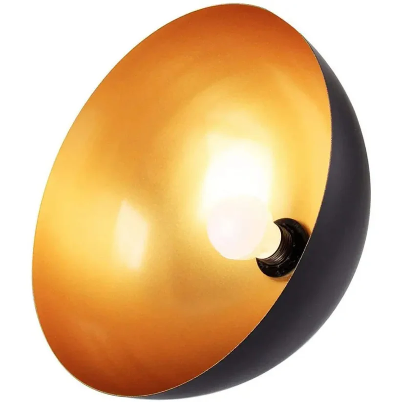 PERFECT INDUSTRIAL STYLE LIGHT: The harmonious combination of metallic black top and glossy gold convex inside makes this Industrial Pendant Light a classy decor, adding a rustic touch to your home