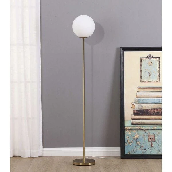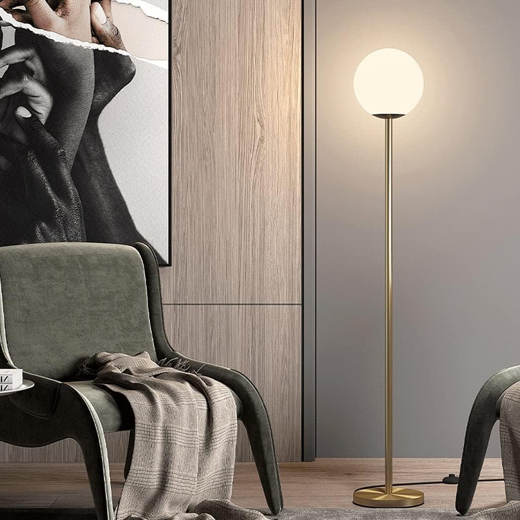High Pole Lamp Floor Lamp by METIFY HOMES for Bedroom Standing Lamp Metal Floor Lamp with Glass Ball Lampshade Iron Base Floor Light Classic Elegance