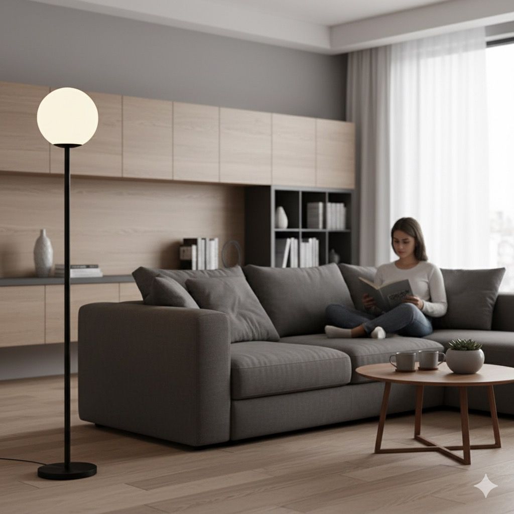 High Pole Lamp Floor Lamp by METIFY HOMES for Bedroom Standing Lamp Metal Floor Lamp with Glass Ball Lampshade Iron Base Floor Light Classic Elegance