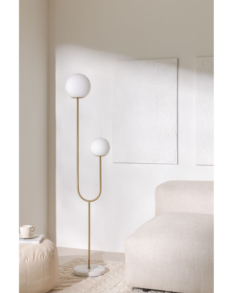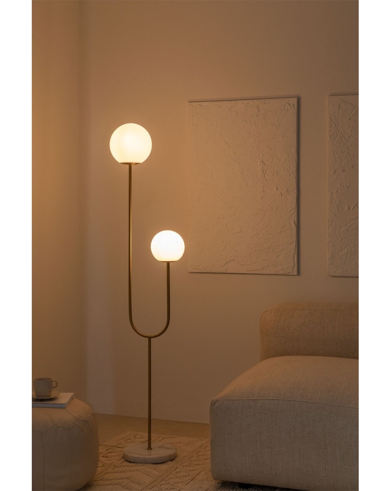 The Moonlight 2-Light Metal and Glass Floor Lamp combines a unique and elegant design with top-quality finishes. This type of designer lamp allows us to add that elegant touch that will bring personality to any space, turning it into something unique. Features of the Moonlight 2-Light Metal and Glass Floor Lamp. The Moonlight 2-Light Metal and Glass Floor Lamp has a simple design that gives a modern touch to the space.