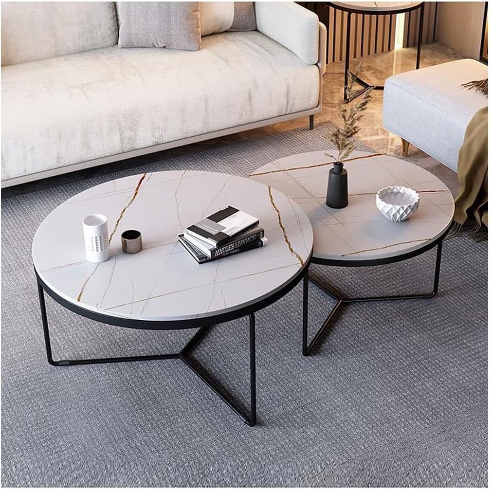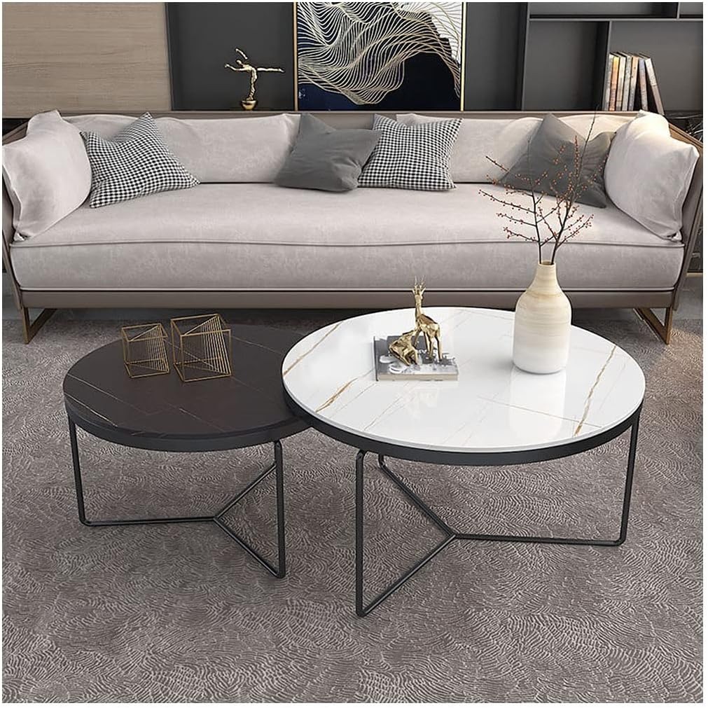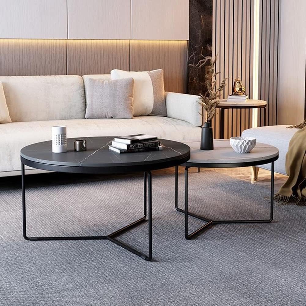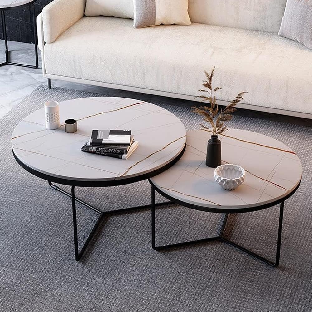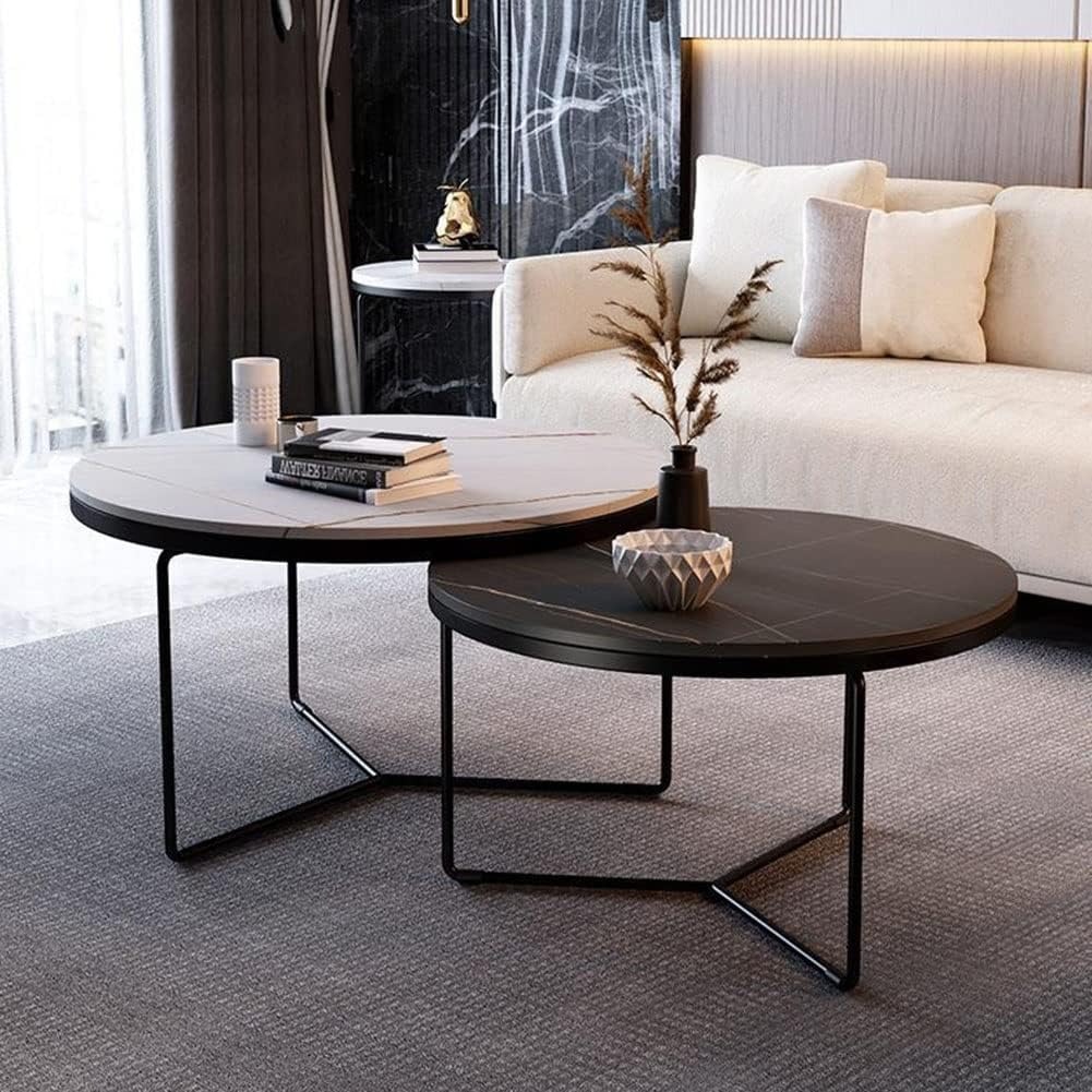 Nesting Coffee Table Set of 2 Round Stacking Side